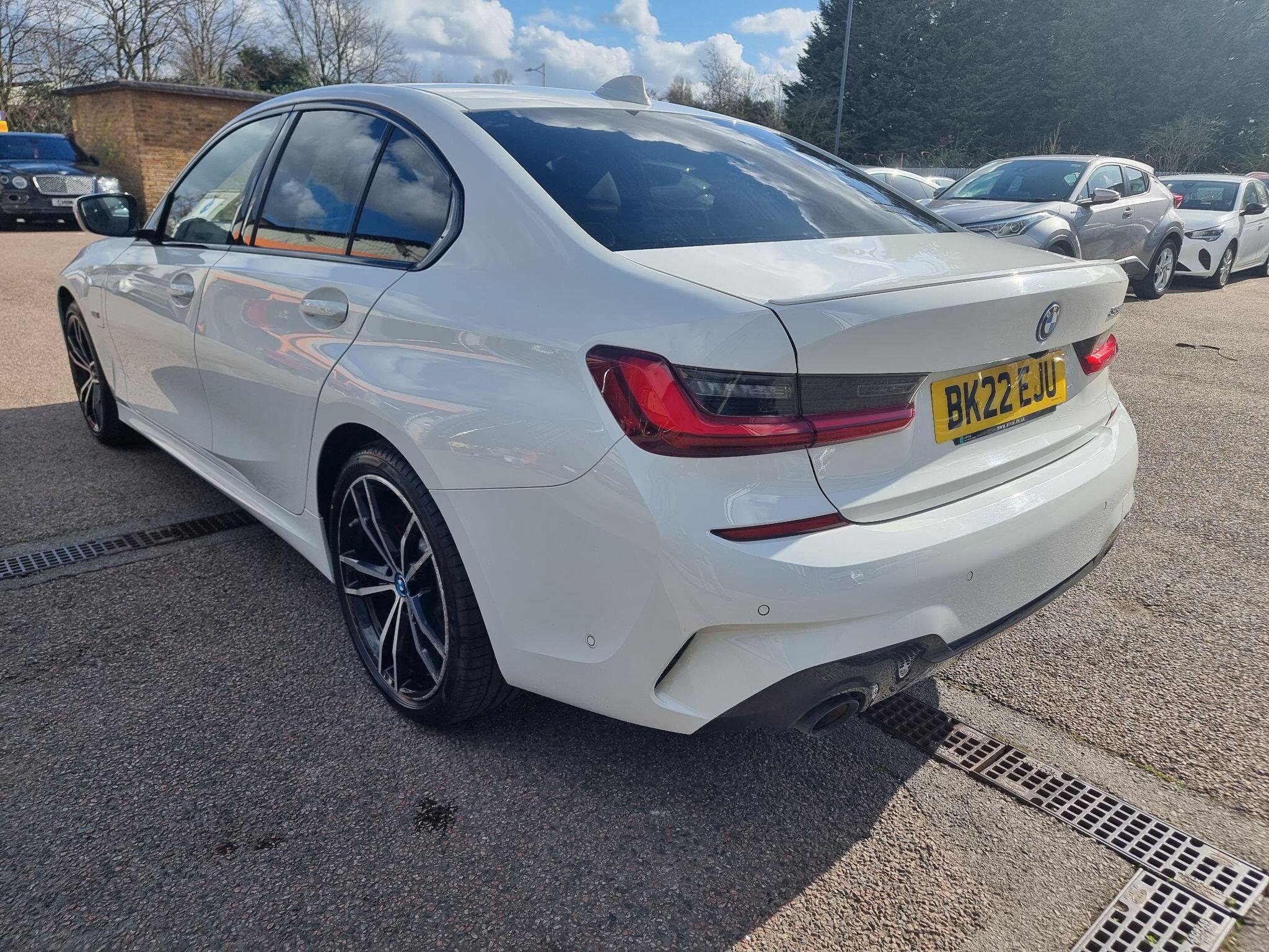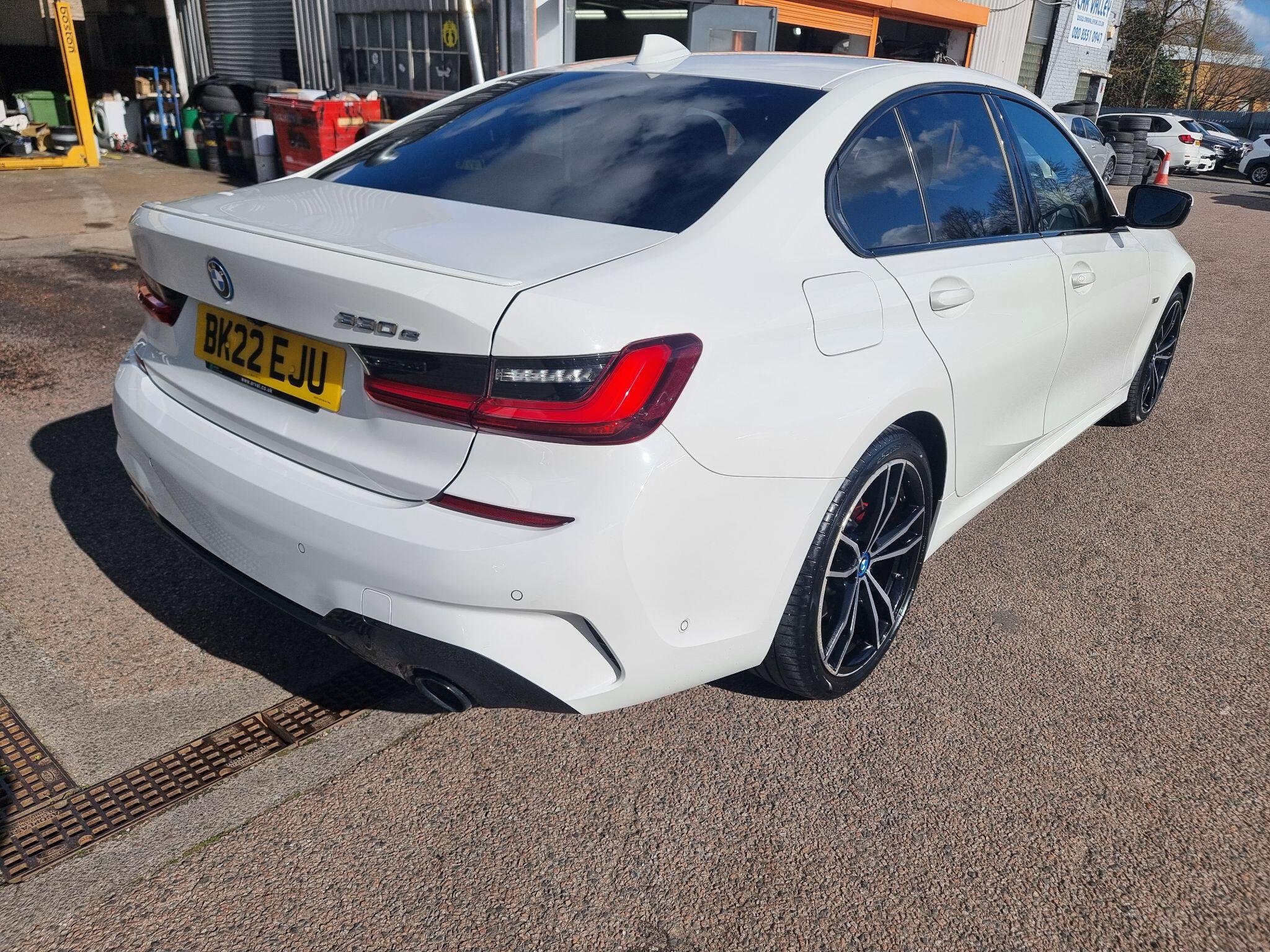 This 2022 BMW 3 Series 330e M Sport is a superb example, having had only one owner since new. This plug in hybrid model boasts a 2.0 litre petrol engine and meets Euro 6 emission standards. It comes equipped with the desirable M Sport Pro Package, featuring striking M Sport Brakes in Red High Gloss. Inside, you will find the BMW Live Cockpit Professional, complete with Bluetooth connectivity, and comfortable Seat Heating for both the driver and front passenger. The BMW Connected Package Professional further enhances the experience, including seamless Apple CarPlay integration. Experience exhilarating performance with this 330e M Sport, capable of accelerating from 0 to 62 miles per hour in just 5.8 seconds. This impressive acceleration, combined with its plug in hybrid technology, sets it apart from many other vehicles in its class, offering a compelling blend of efficiency and dynamic driving. The M Sport trim ensures a sporty aesthetic and engaging driving dynamics, making this BMW 3 Series a truly desirable choice. -