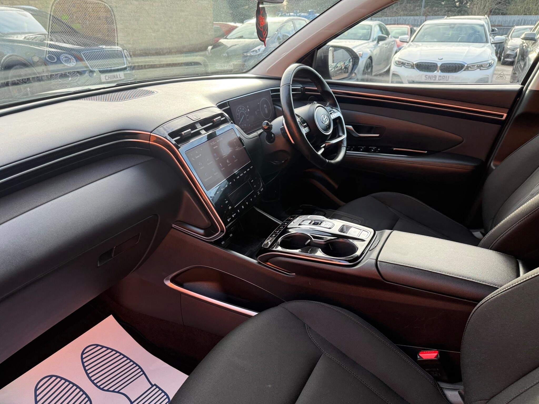 This 2022 Hyundai TUCSON h T-GDi Premium is a fantastic example, having had only one owner since new. This Euro 6 compliant, Four Wheel Drive model boasts a 1.6 litre Petrol Plug-in Hybrid engine, offering an efficient and capable driving experience. It comes equipped with both an AC charging cable for charging stations and an ICCB cable for domestic power sockets, ensuring flexibility in how you power up. Inside, you'll find a heated steering wheel for added comfort on colder days, and seamless phone connectivity with Apple CarPlay. Parking is made easier with a rear camera and parking assistance system. The Premium trim level of this TUCSON offers a range of benefits that set it apart. Its large boot space provides ample room for luggage, shopping, or sports equipment, making it a practical choice for families and active individuals. Furthermore, its low insurance group rating indicates that running costs are likely to be more affordable compared to similar vehicles. These features combined with its plug in hybrid technology and four wheel drive capability make this Hyundai TUCSON a compelling option for those seeking a versatile and economical SUV. -