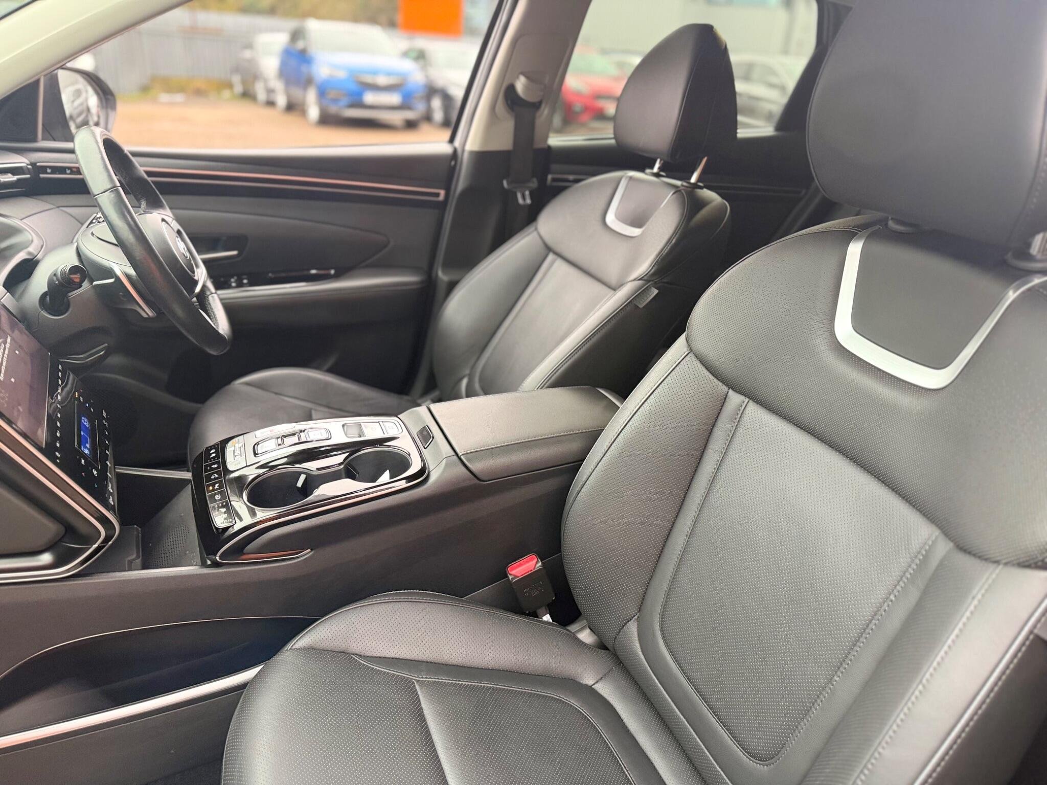 This 2022 Hyundai TUCSON h T-GDi Ultimate is a superb example, having had only one owner since new. It boasts a 1.6 litre petrol plug-in hybrid engine paired with a Four Wheel Drive drivetrain, all meeting the Euro 6 emission class. This Ultimate trim level comes equipped with a host of desirable features, including an ICCB cable for domestic power sockets and a charging cable for AC charging stations, making charging convenient. You'll also enjoy the expansive panoramic glass sunroof, which offers electric tilt and slide functionality for an open air feel. Automatic headlights with a dusk sensor ensure visibility is always optimal, and Bluetooth connectivity keeps you connected on the go. The highlights of this TUCSON demonstrate its superior offering compared to other vehicles in its class. Its low insurance group rating means more affordable ownership, while the generous boot space provides ample room for all your luggage and shopping needs. The combination of its efficient plug-in hybrid technology, advanced four wheel drive system, and premium Ultimate specification makes this Hyundai TUCSON a truly compelling choice for those seeking a versatile and well equipped SUV. -