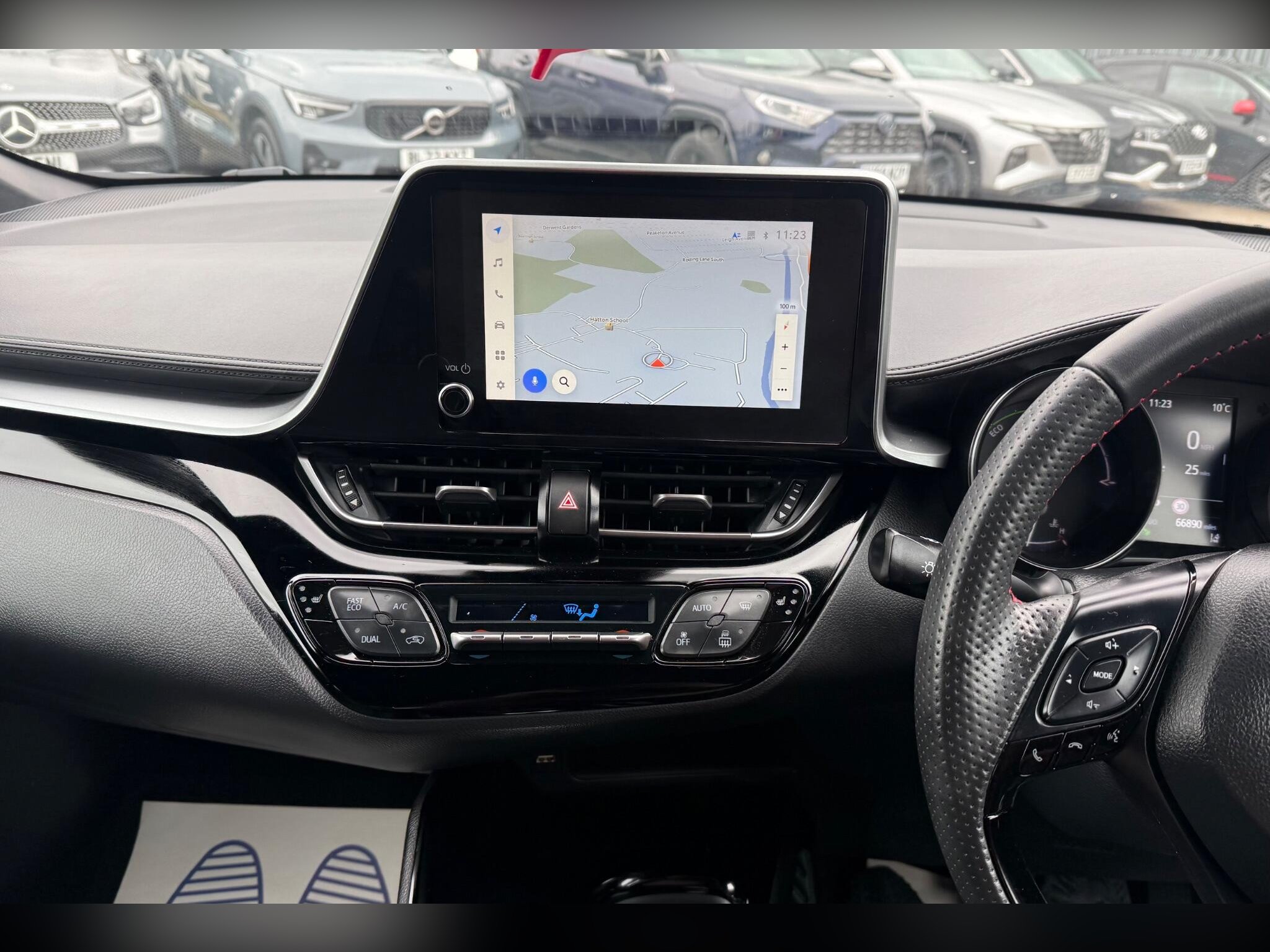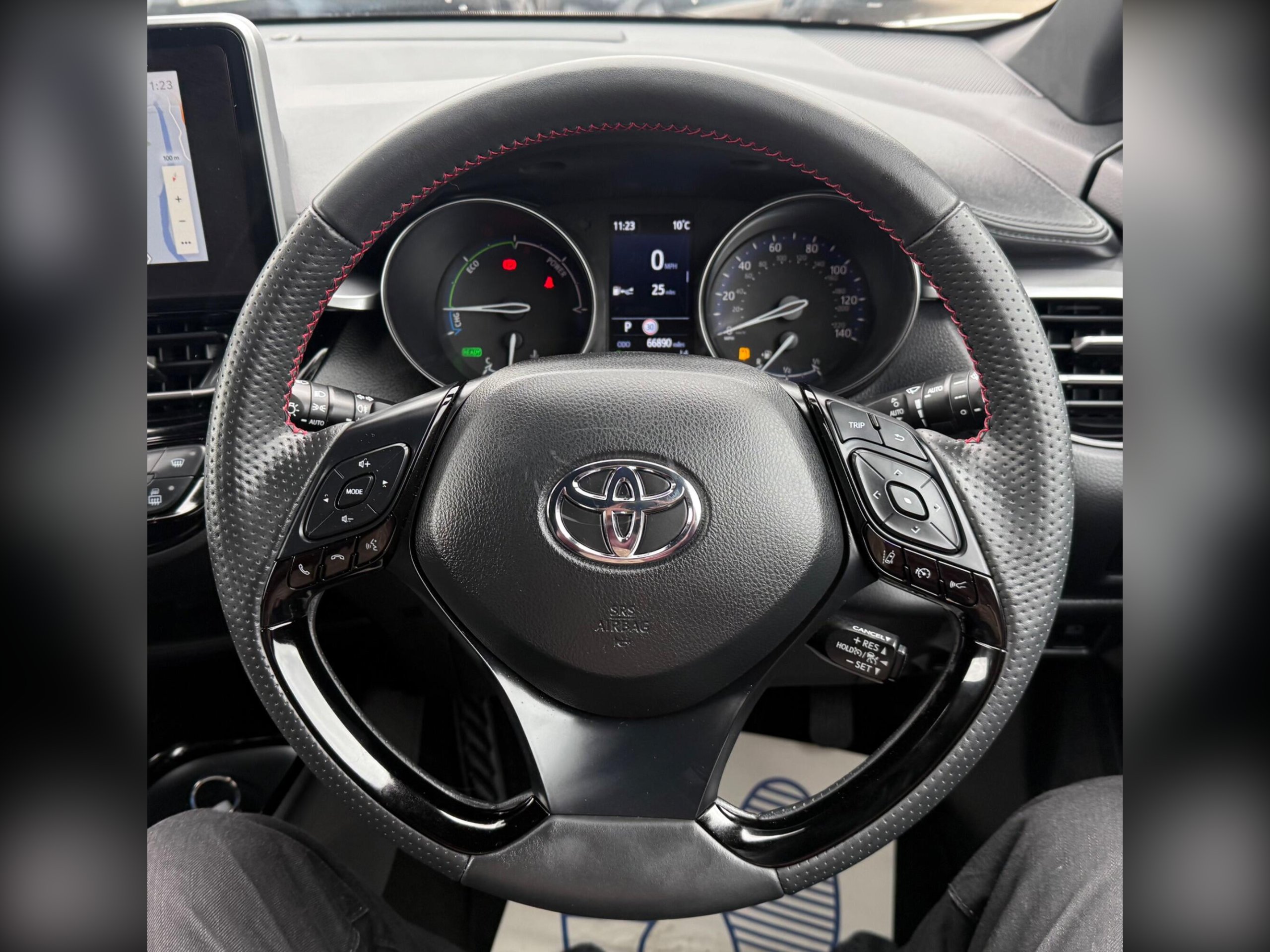 This 2023 Toyota C-HR VVT-h GR SPORT is a superb example, having had only one owner since new. This stylish GR SPORT trim vehicle is powered by an efficient 1.8 litre petrol hybrid engine, meeting Euro 6 emission standards. It comes equipped with a useful reversing camera that includes rear parking assistance, and auto headlights that switch on automatically. Inside, you'll find dual zone automatic air conditioning for personalised comfort, and heated front seats for those colder journeys. The Tech Pack adds further convenience with blind spot assistance, keyless entry, and front and rear parking sensors. This C-HR GR SPORT offers excellent running costs, highlighted by an impressive fuel economy of 58 miles per gallon. Its low CO2 emissions and low insurance group rating further demonstrate how this vehicle is a more economical choice compared to similar cars. This combination of advanced features, efficient hybrid technology, and cost saving benefits makes it a compelling option. -