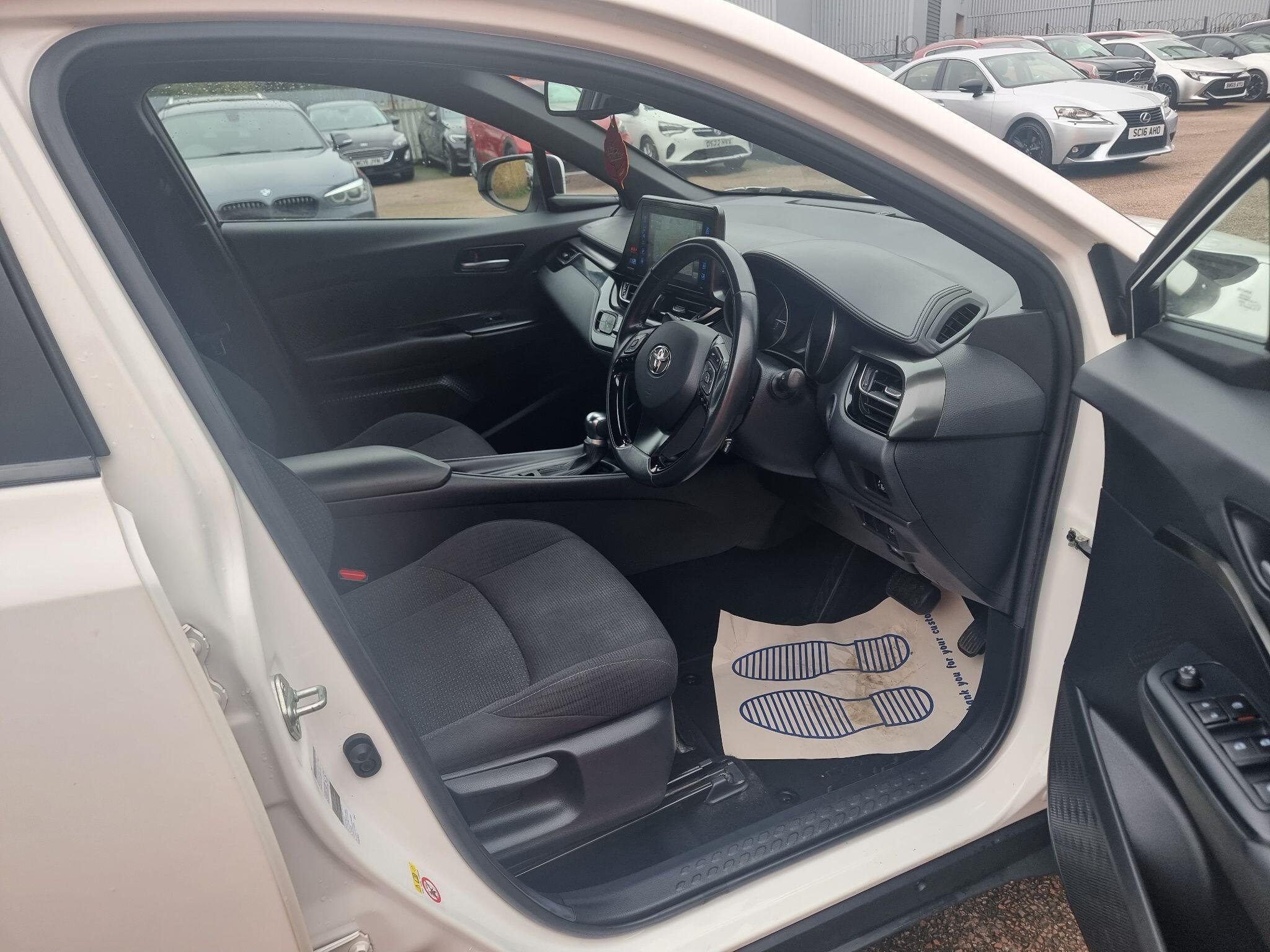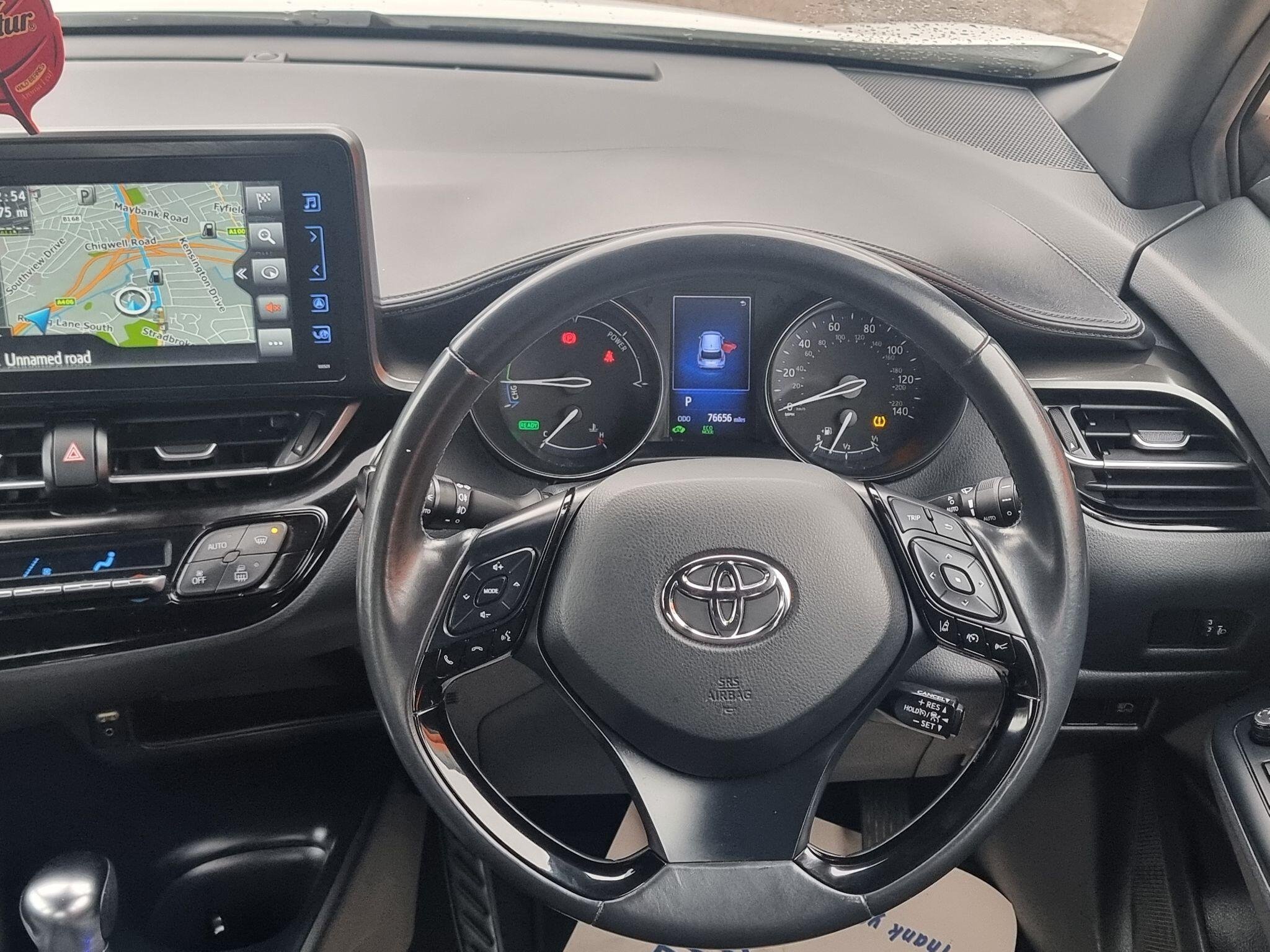 This 2019 Toyota C-HR VVT-h Icon is a 1.8L petrol hybrid that offers an impressive 59 miles per gallon, making it an economical choice for your daily journeys. As a Euro 6 compliant vehicle, it also benefits from low CO2 emissions. This Icon trim level comes equipped with a suite of modern features designed for convenience and safety. You'll find the Toyota Touch 2 Multimedia System with a 7 inch display, offering seamless integration with Android Auto and Apple CarPlay, alongside Bluetooth connectivity for hands free calls and audio streaming. For easier parking, a reversing camera is included, and the auto headlights ensure optimal visibility in varying light conditions. Adaptive Cruise Control is also fitted, which helps maintain a set speed and distance from the vehicle ahead. The highlights of this Toyota C-HR demonstrate its superior value compared to other vehicles in its class. Its exceptional fuel economy of 59 mpg means fewer stops at the petrol station and lower running costs. Furthermore, its low insurance group rating contributes to more affordable ownership. Combined with its low CO2 emissions, this C-HR presents a compelling package for those seeking an efficient, cost effective, and well equipped compact car. -